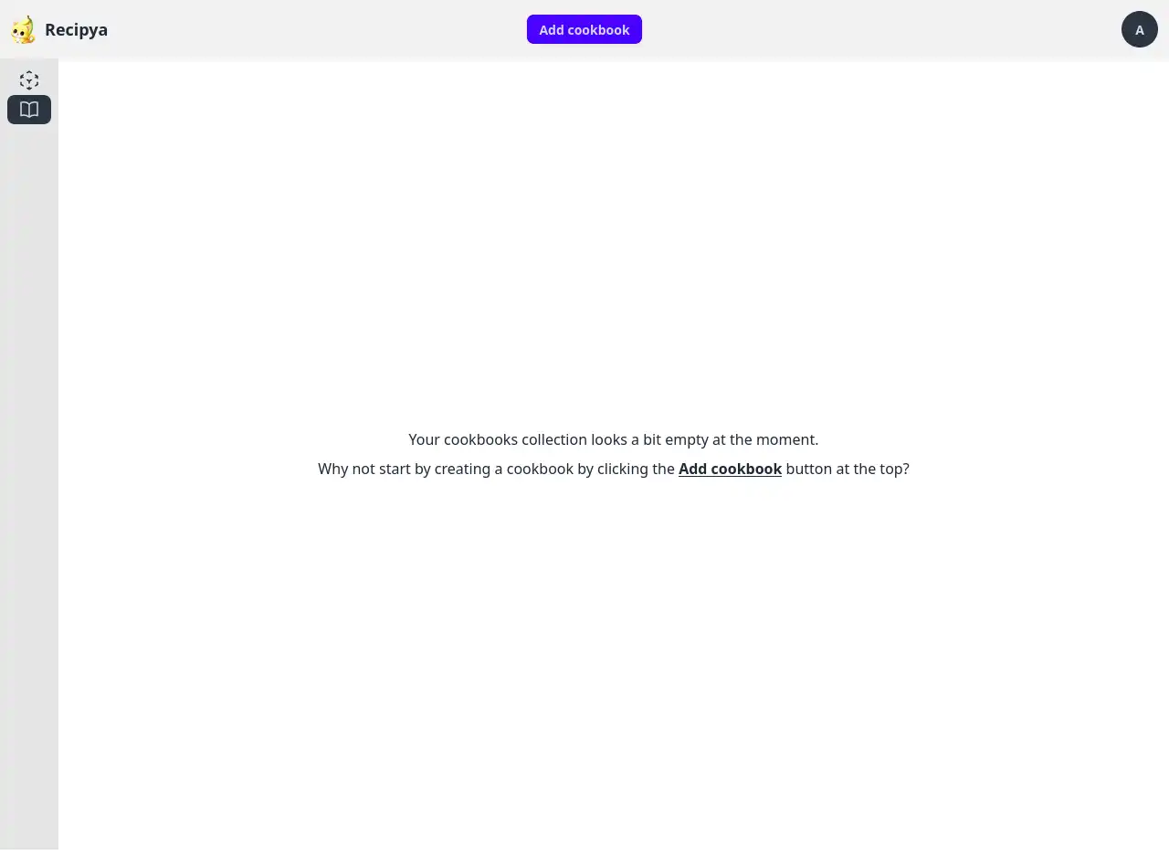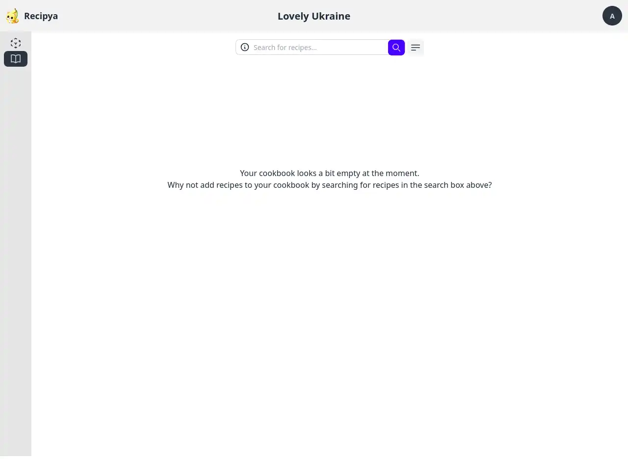 Your cookbook is empty after creation. You can add recipes by searching for them in the search box.