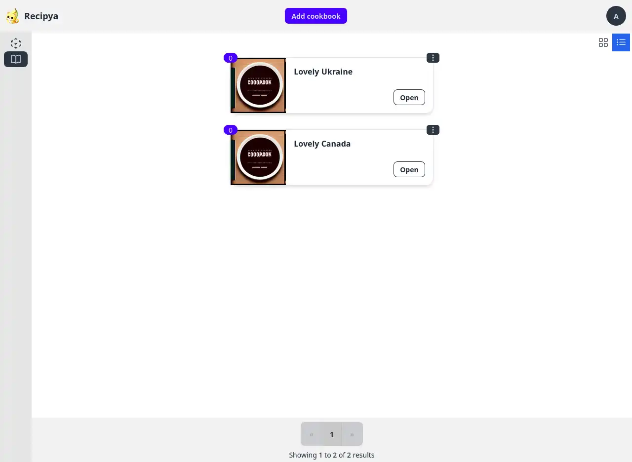 The cookbook will then be displayed to you immediately. The following image shows two created cookbooks.